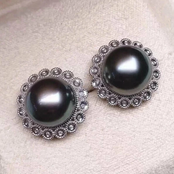 ⭐SOPHISTICATED AND ELEGANT – The Tahitian Black Pearls add that perfect complement to your outfit. The leverback posts are crafted of solid 18K gold & diamond.